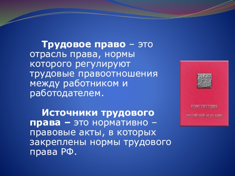 Слайд 5Трудовое право – это отрасль права, нормы которого регулируют трудовые правоотношения