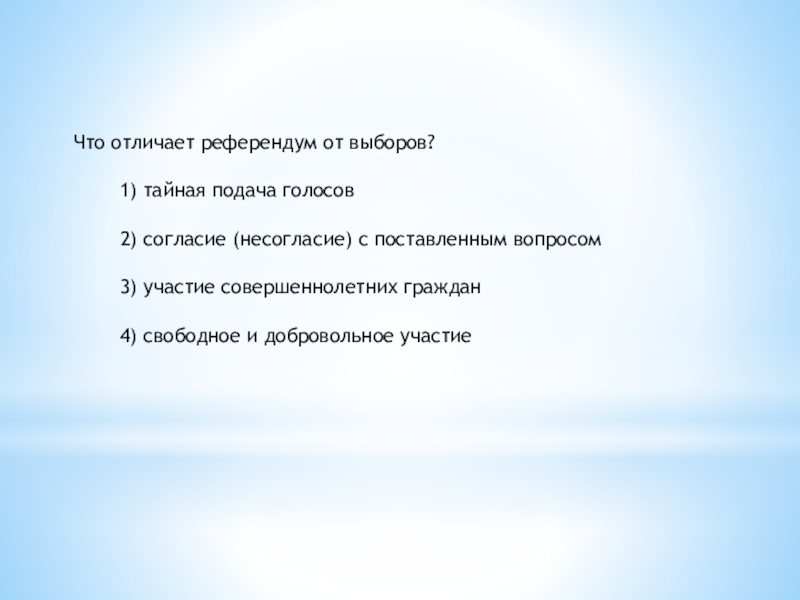 Слайд 36Что отличает референдум от выборов?