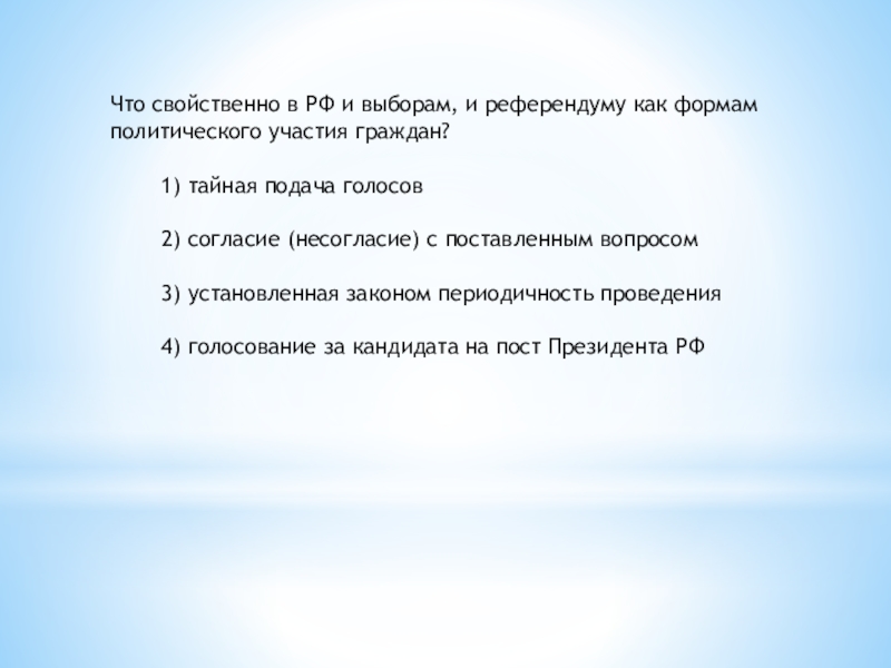 Слайд 35Что свойственно в РФ и выборам, и референдуму как формам политического