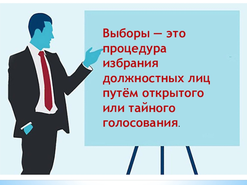 Слайд 4Выборы — это процедура избрания должностных лиц путём открытого или тайного