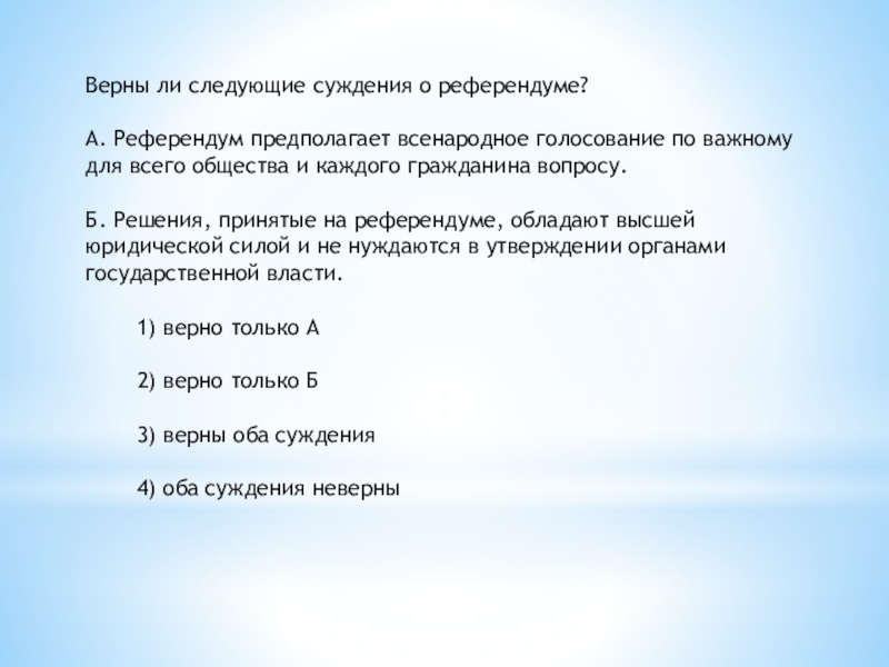 Слайд 31Верны ли следующие суждения о референдуме?