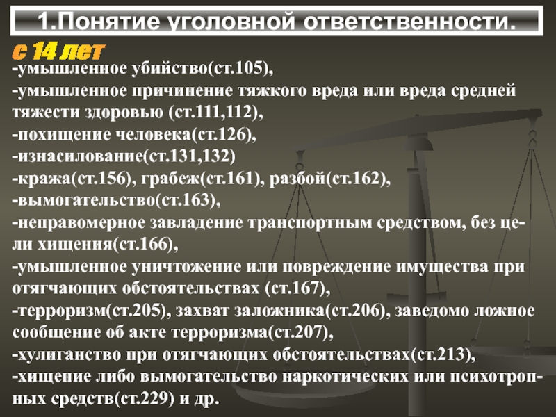 -по общему правилу с 16 лет, по ряду преступлений – с с 14 лет