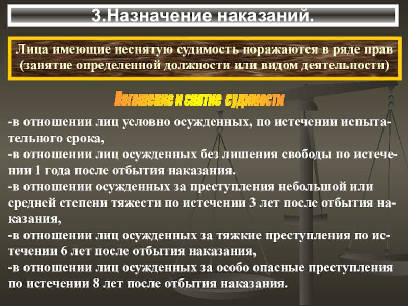 Лица имеющие неснятую судимость поражаются в ряде прав