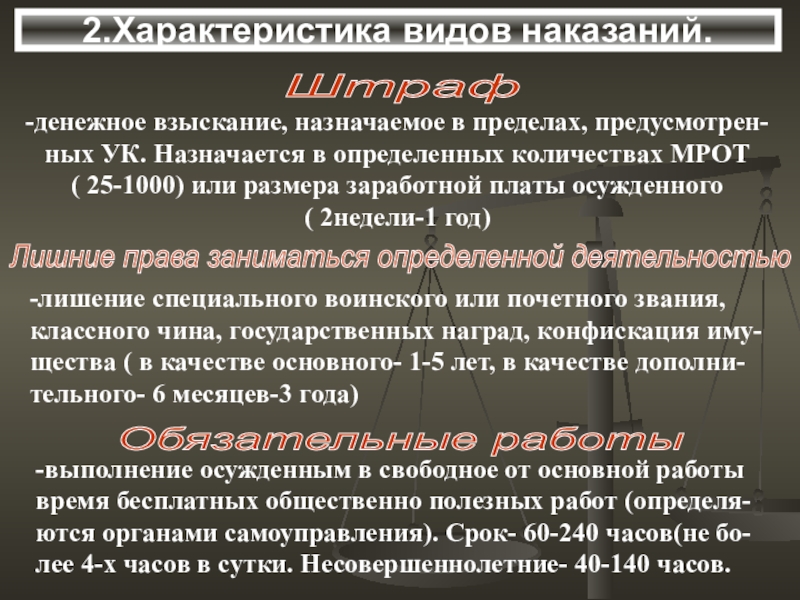 ных УК. Назначается в определенных количествах МРОТ