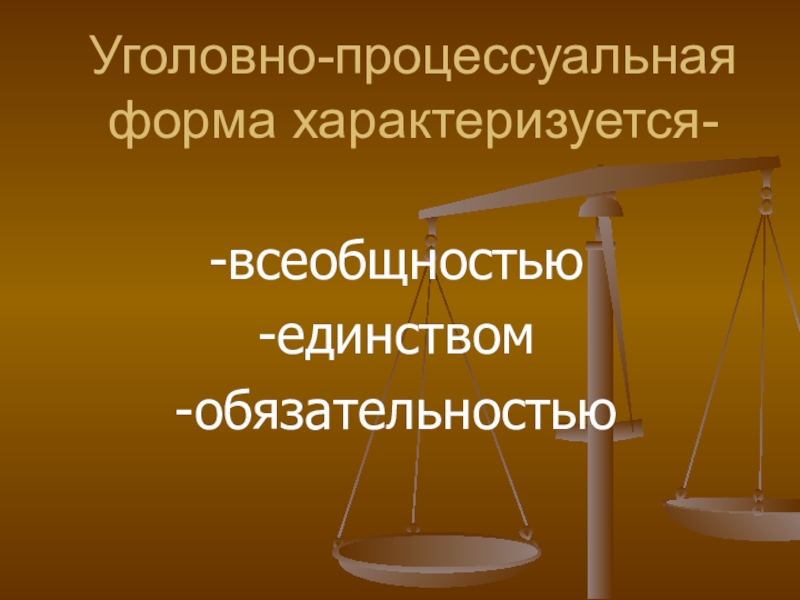 Уголовно-процессуальная форма характеризуется-  -всеобщностью-единством-обязательностью