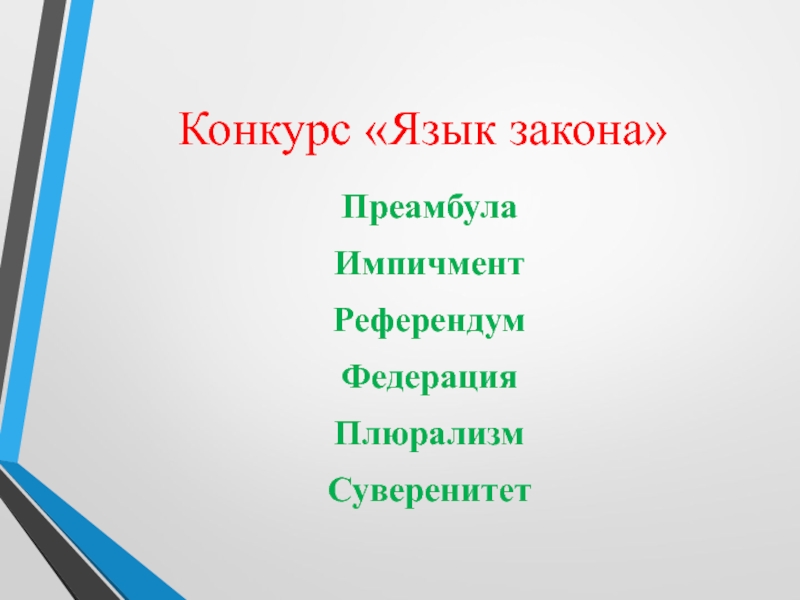 Конкурс «Язык закона»Преамбула Импичмент РеферендумФедерацияПлюрализмСуверенитет