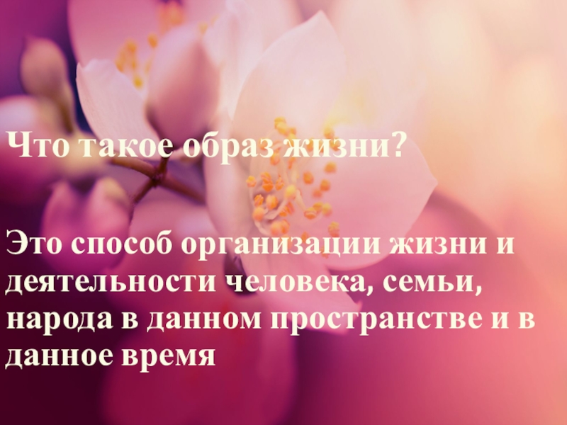 Что такое образ жизни?Это способ организации жизни и деятельности человека, семьи, народа в данном пространстве и в