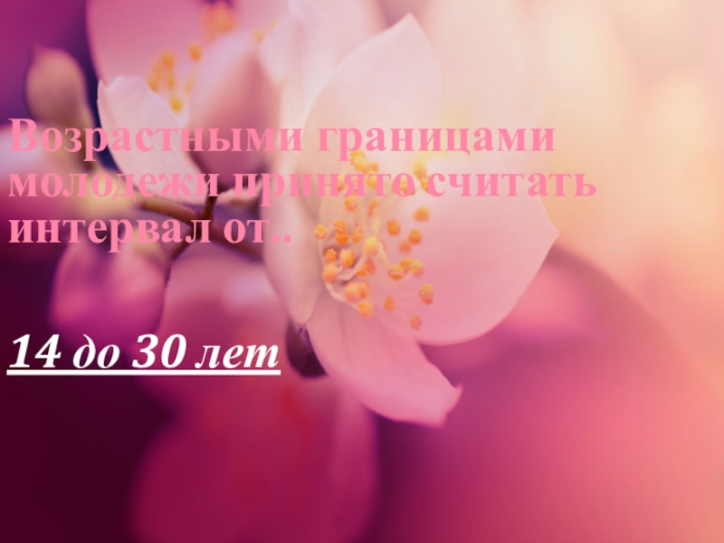 Возрастными границами молодежи принято считать интервал от..14 до 30 лет