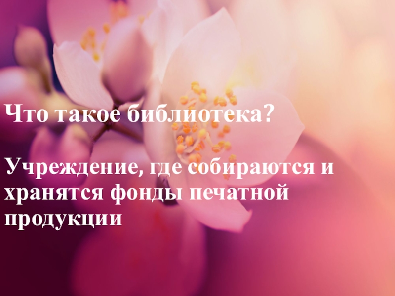 Что такое библиотека?Учреждение, где собираются и хранятся фонды печатной продукции