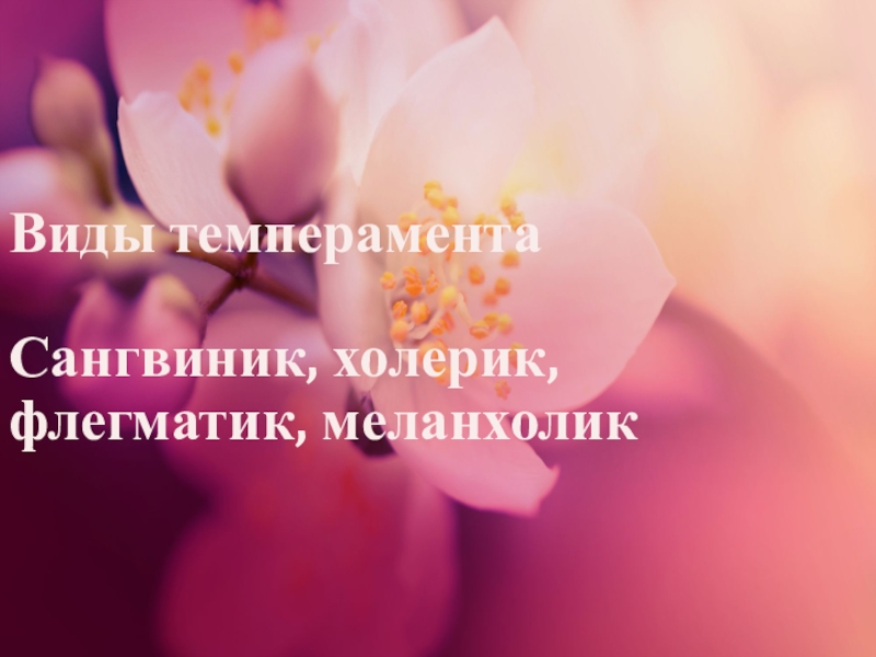 Виды темпераментаСангвиник, холерик, флегматик, меланхолик