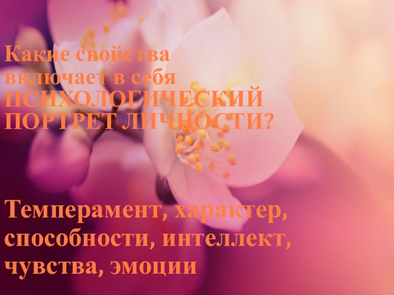 Слайд 5Какие свойства включает в себя ПСИХОЛОГИЧЕСКИЙ ПОРТРЕТ ЛИЧНОСТИ?
