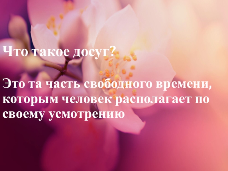 Что такое досуг?Это та часть свободного времени, которым человек располагает по своему усмотрению