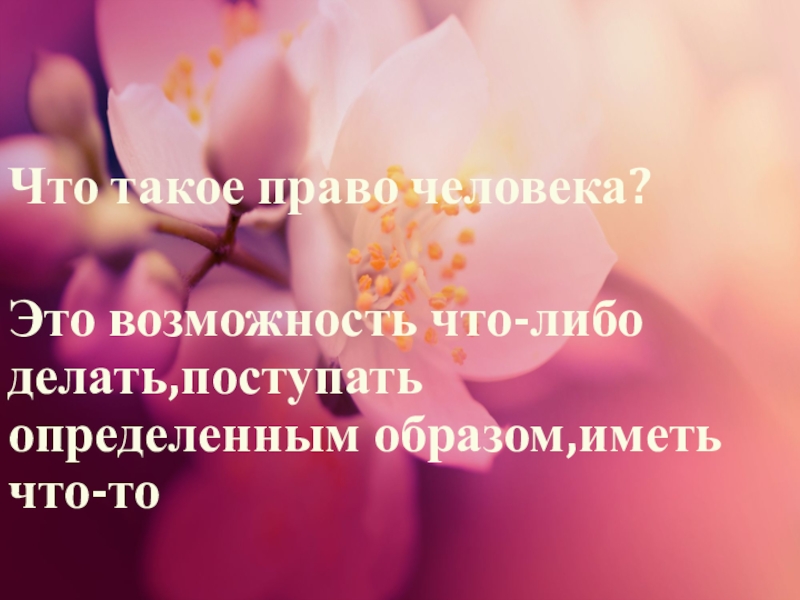 Что такое право человека?Это возможность что-либо делать,поступать определенным образом,иметь что-то