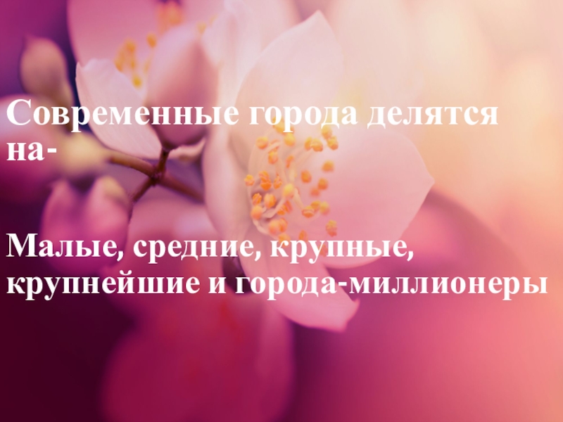 Современные города делятся на-Малые, средние, крупные, крупнейшие и города-миллионеры