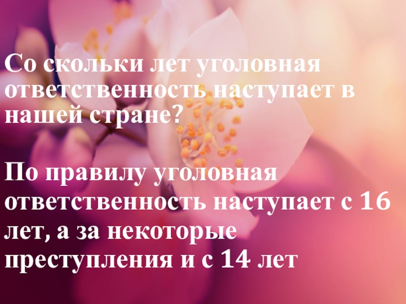 Слайд 16Со скольки лет уголовная ответственность наступает в нашей стране?