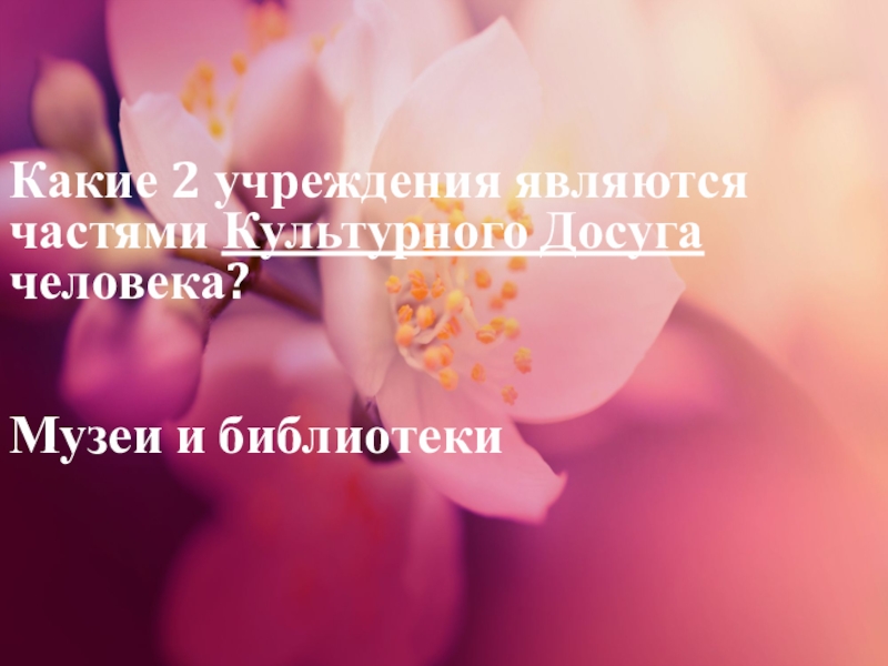 Какие 2 учреждения являются частями Культурного Досуга человека?Музеи и библиотеки