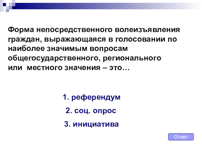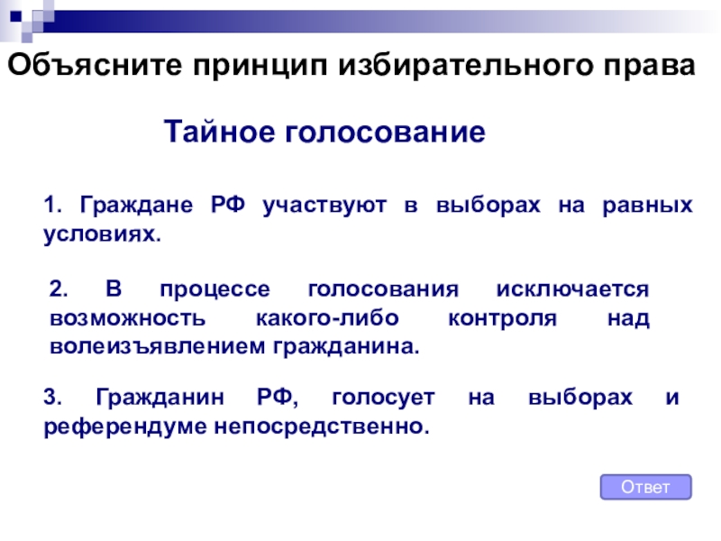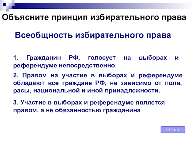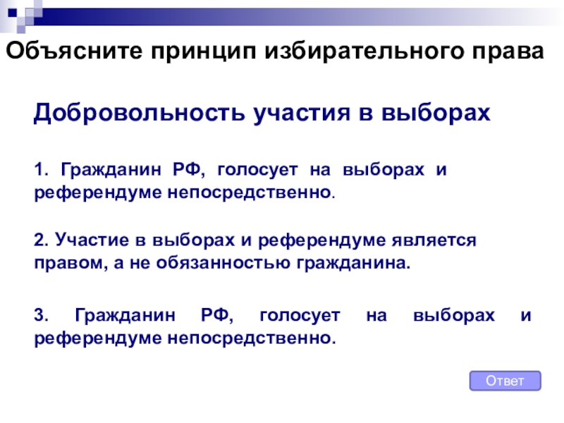 3. Гражданин РФ, голосует на выборах и референдуме непосредственно.