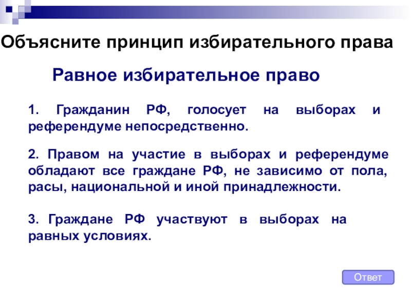 3. Граждане РФ участвуют в выборах на равных условиях.
