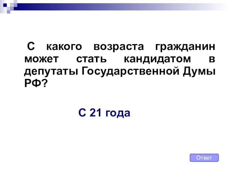 Не имеет права быть избранным гражданин РФ, признанный судом недееспособным или содержащийся в местах лишения свободы по приговору суда.