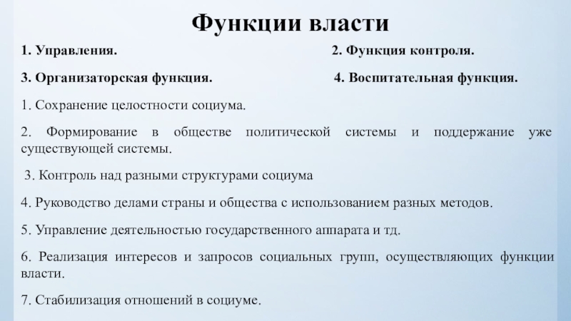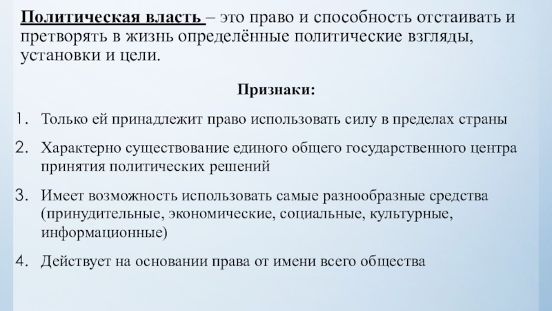 Имеет возможность использовать самые разнообразные средства(принудительные, экономические, социальные, культурные, информационные)