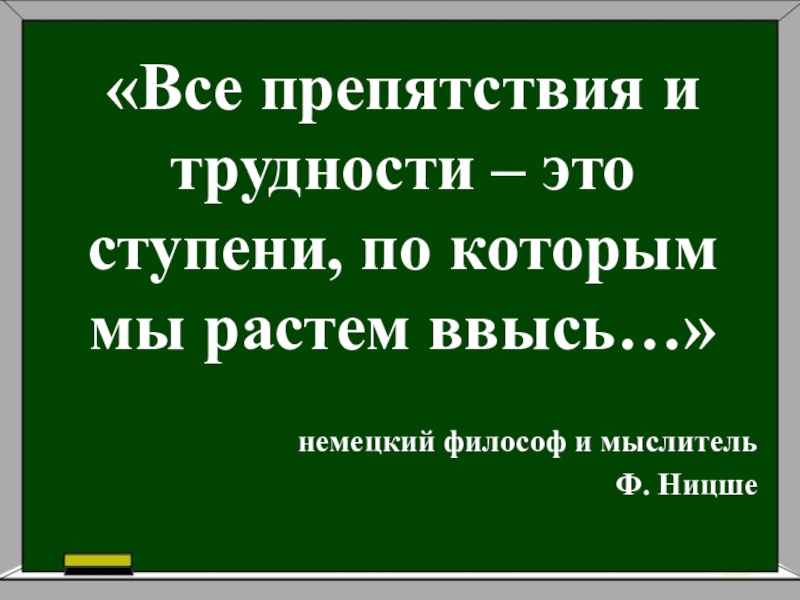 «Все препятствия и трудности – это ступени, по которым мы растем ввысь…»немецкий философ и мыслительФ. Ницше
