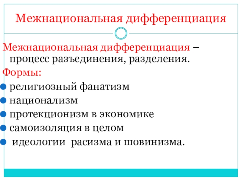Межнациональная дифференциация – процесс разъединения, разделения.