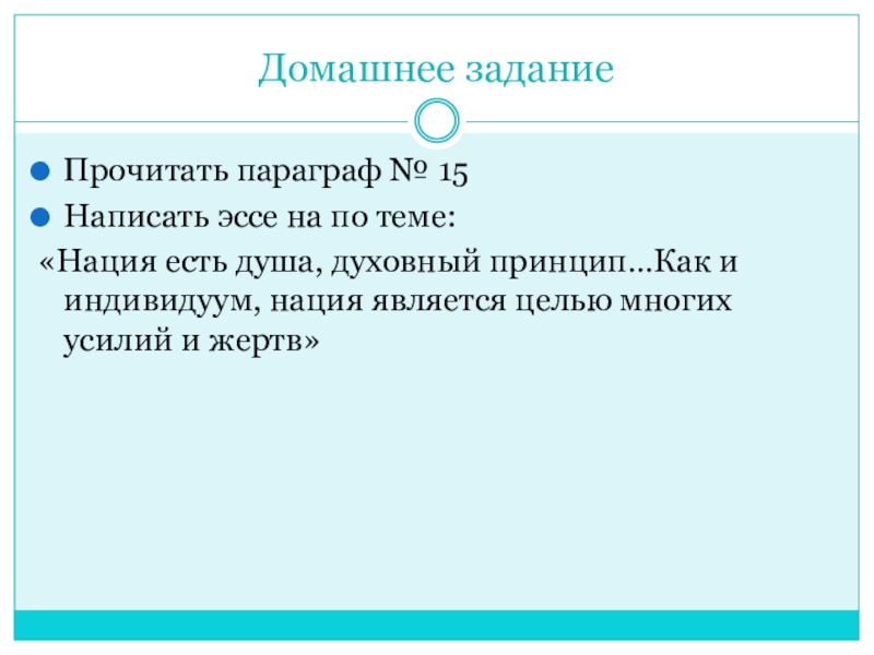духовный принцип…Как и индивидуум, нация является целью многих усилий и жертв»