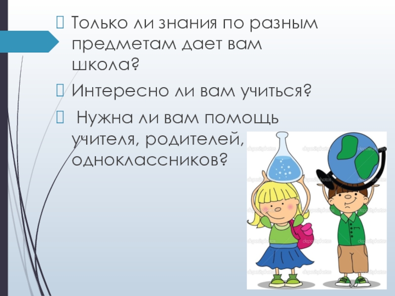 Только ли знания по разным предметам дает вам школа? Интересно ли вам учиться? Нужна ли вам помощь