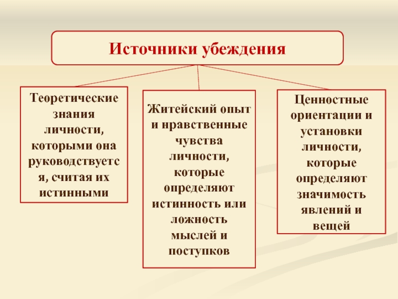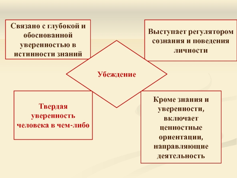 Кроме знания и уверенности, включает ценностные ориентации, направляющие деятельность