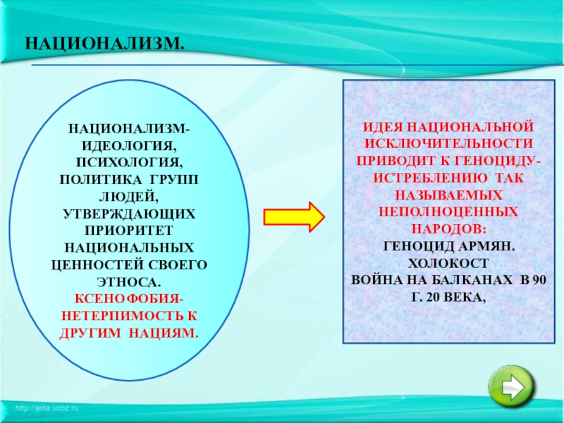 ИДЕЯ НАЦИОНАЛЬНОЙ ИСКЛЮЧИТЕЛЬНОСТИ ПРИВОДИТ К ГЕНОЦИДУ- ИСТРЕБЛЕНИЮ ТАК НАЗЫВАЕМЫХ НЕПОЛНОЦЕННЫХ НАРОДОВ: