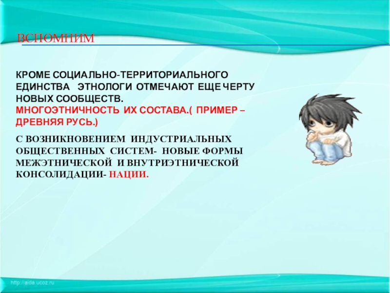 С РАЗВИТИЕМ ТОРГОВЛИ И ОБЩЕСТВЕННОГО РАЗДЕЛЕНИЯ ТРУДА ВЫДВИГАЮТСЯ НЕ РОДОВЫЕ А СОЦИАЛЬНО- ТЕРРИТОРИАЛЬНЫЕ СВЯЗИ- НАРОДНОСТИ И НАРОДЫ.