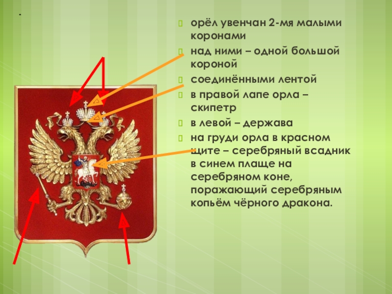 Слайд 7орёл увенчан 2-мя малыми коронами