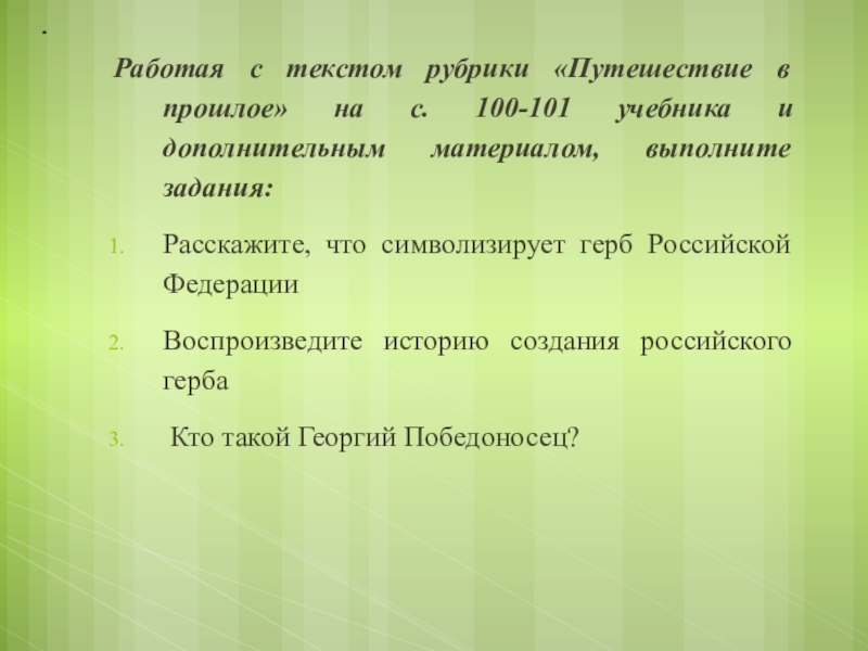 Работая с текстом рубрики «Путешествие в прошлое» на с. 100-101 учебника и дополнительным материалом, выполните задания:Расскажите, что
