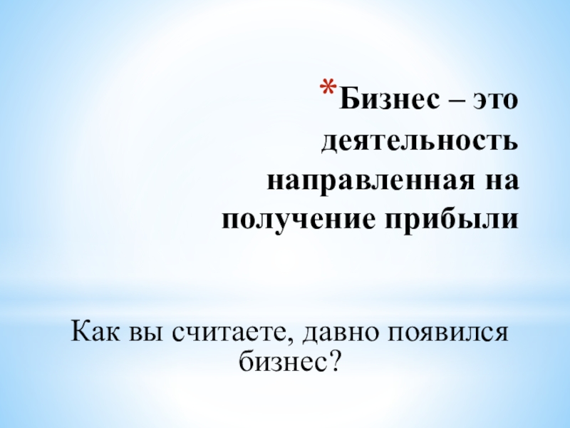 Бизнес – это деятельность направленная на получение прибылиКак вы считаете, давно появился бизнес?