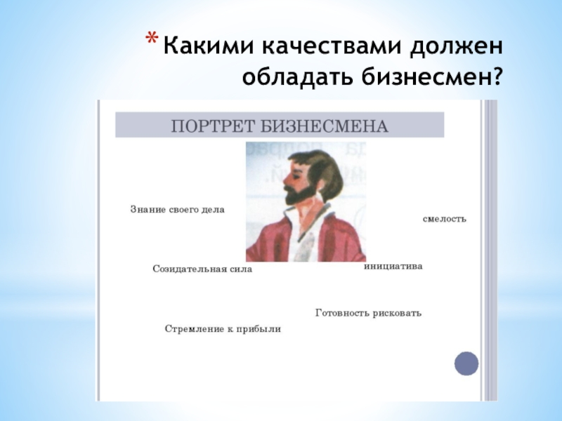 Слайд 4Какими качествами должен обладать бизнесмен?