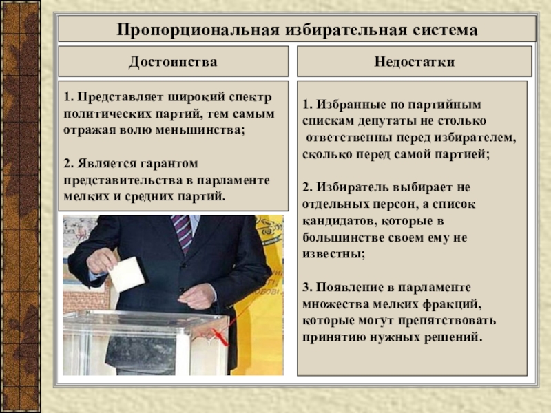 Для пропорциональной избирательной системы характерны