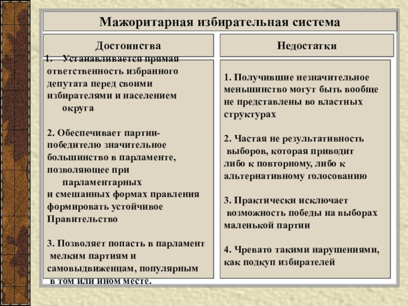 Для мажоритарной избирательной системы характерны
