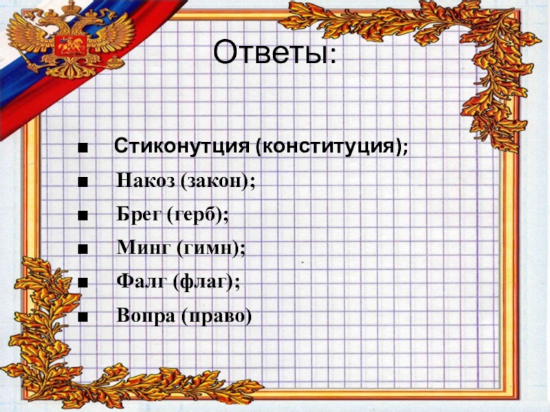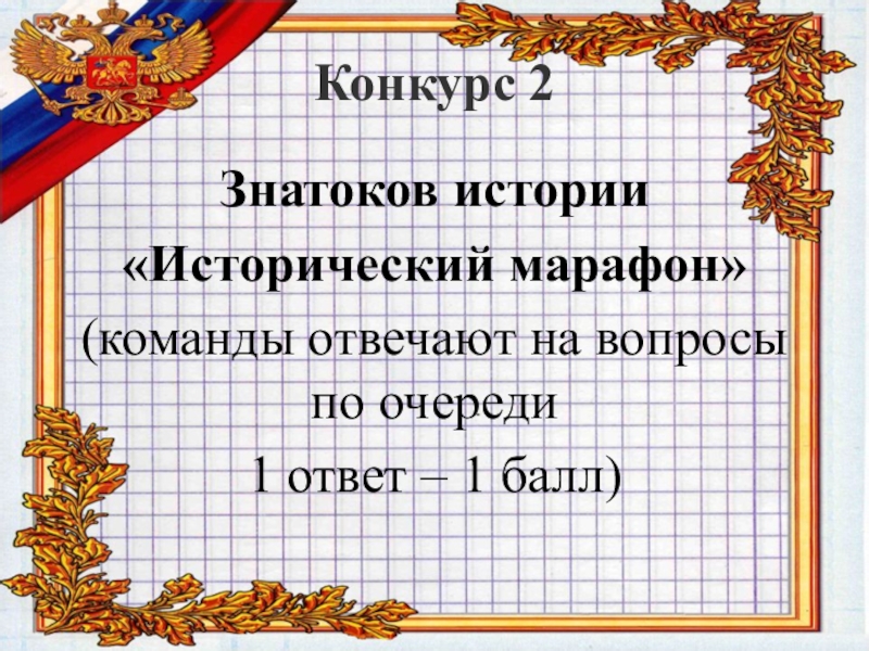 1 ответ – 1 балл, если ответа нет, то право ответа переходит к другой команде)