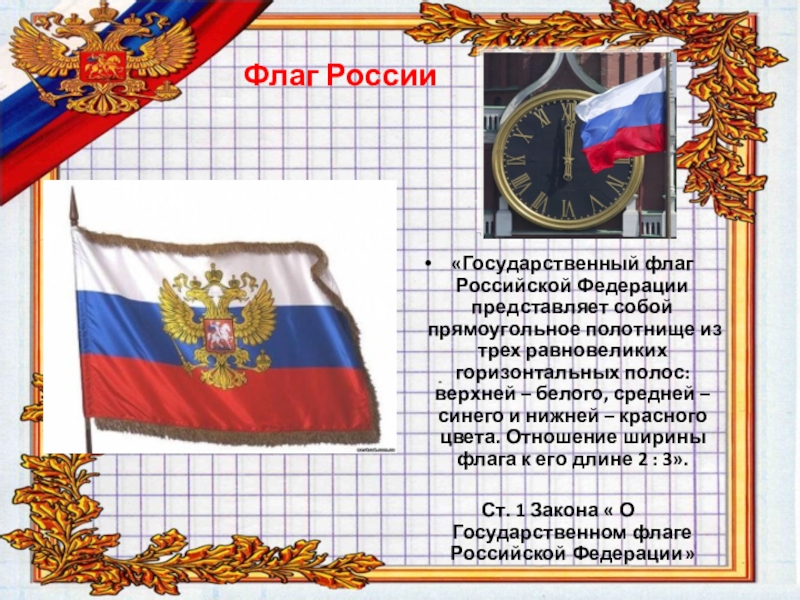 «Государственный флаг Российской Федерации представляет собой прямоугольное полотнище из трех