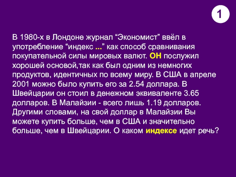 Слайд 3В 1980-х в Лондоне журнал “Экономист” ввёл в употребление “индекс ...”