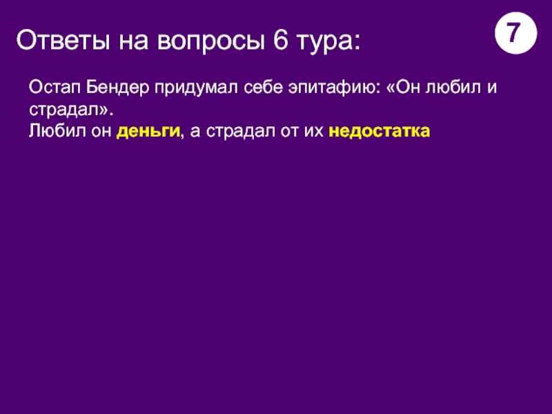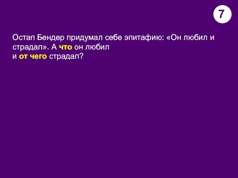 Слайд 120Остап Бендер придумал себе эпитафию: «Он любил и страдал». А что