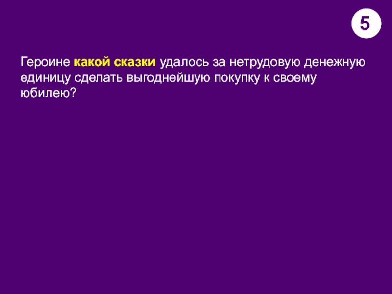Слайд 118Героине какой сказки удалось за нетрудовую денежную единицу сделать выгоднейшую покупку