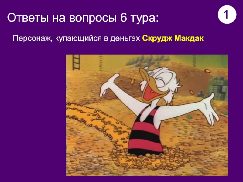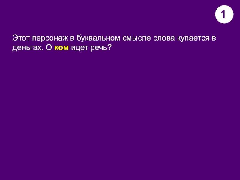 Слайд 114Этот персонаж в буквальном смысле слова купается в деньгах. О ком