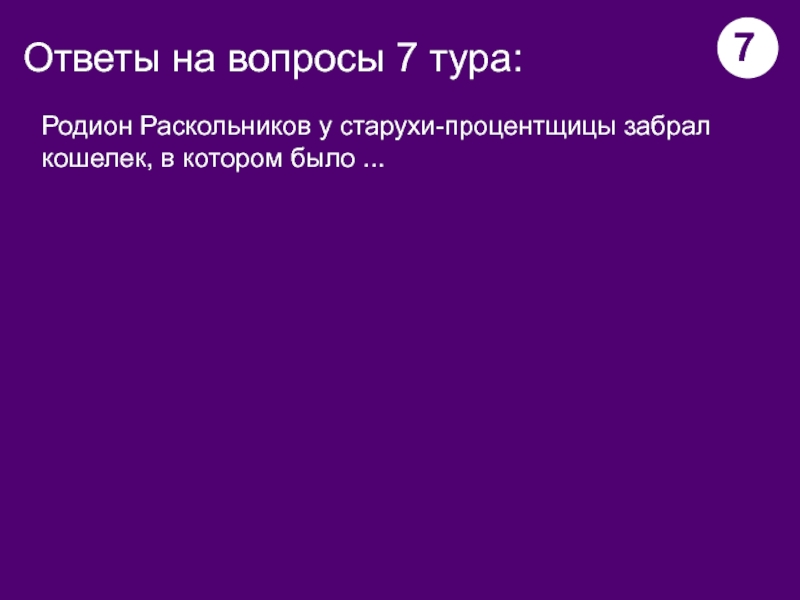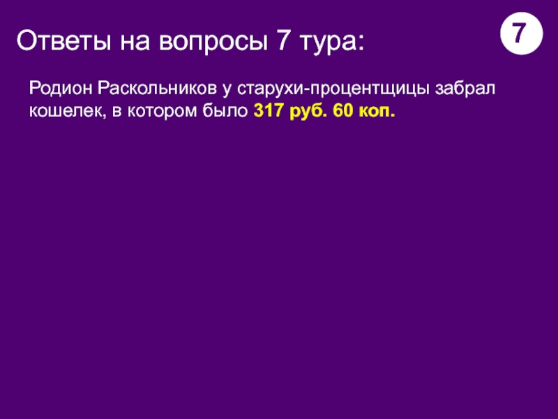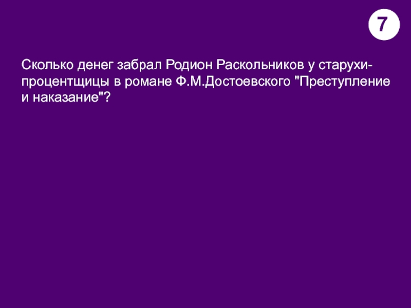 Слайд 144Сколько денег забрал Родион Раскольников у старухи-процентщицы в романе Ф.М.Достоевского "Преступление