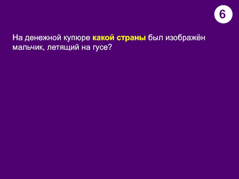 Слайд 119На денежной купюре какой страны был изображён мальчик, летящий на гусе?