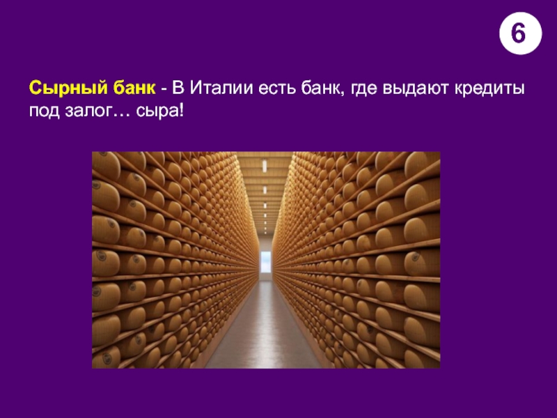Слайд 110Сырный банк - В Италии есть банк, где выдают кредиты под
