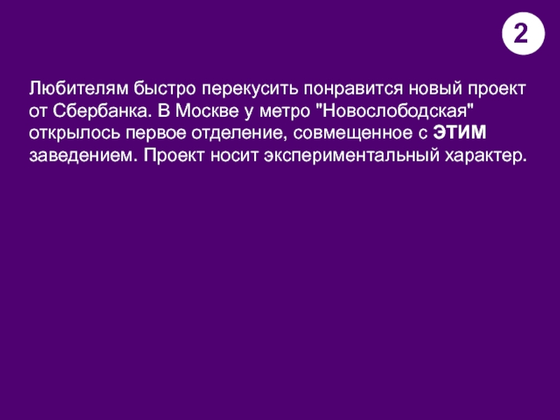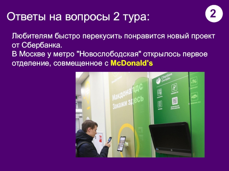 Слайд 28Любителям быстро перекусить понравится новый проект от Сбербанка. В Москве у