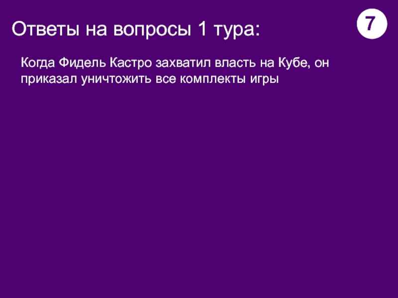 7. Какую игру приказал уничтожить Фидель Кастро?