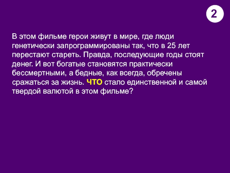 Слайд 115В этом фильме герои живут в мире, где люди генетически запрограммированы