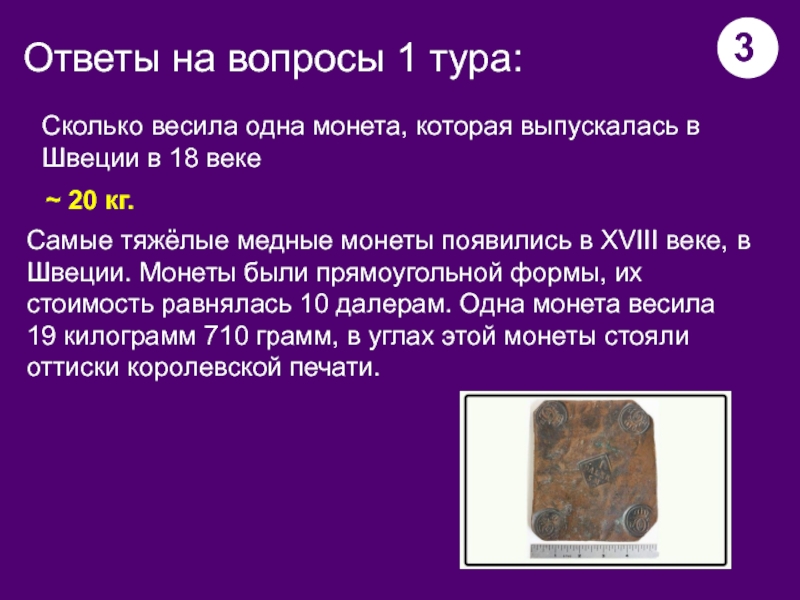 Слайд 5Сколько весила одна монета, которая выпускалась в Швеции в 18 веке?